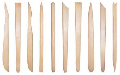 4 ébauchoirs en bois dur longeur 200 mm. 3 ébauchoirs en bois dur longeur 150 mm. 1 mirette longeur 220mm, fil rond 1 mirette longeur 140 mm.